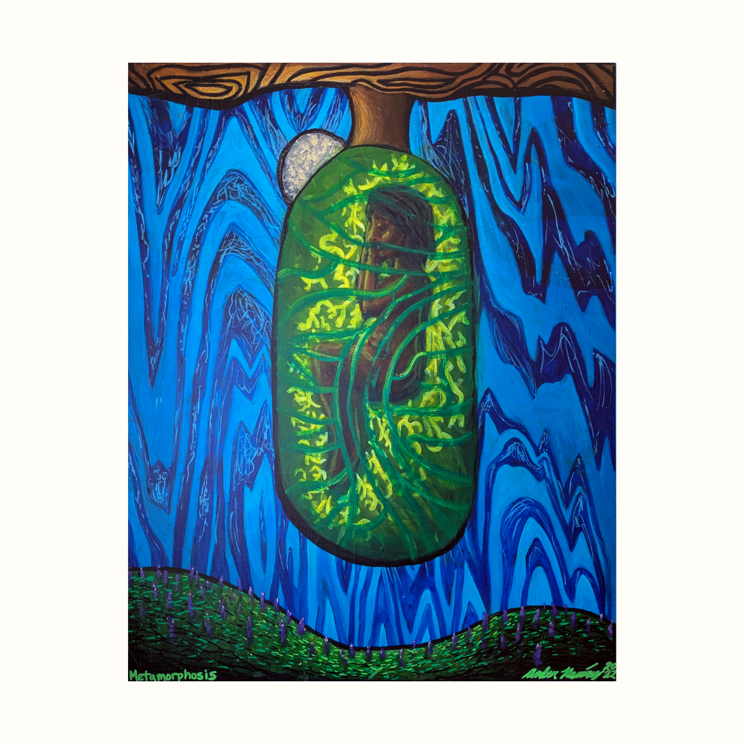 Metamorphosis is an original painting I first created in my last year of my BFA program in 2018 for my final project in one of my classes.