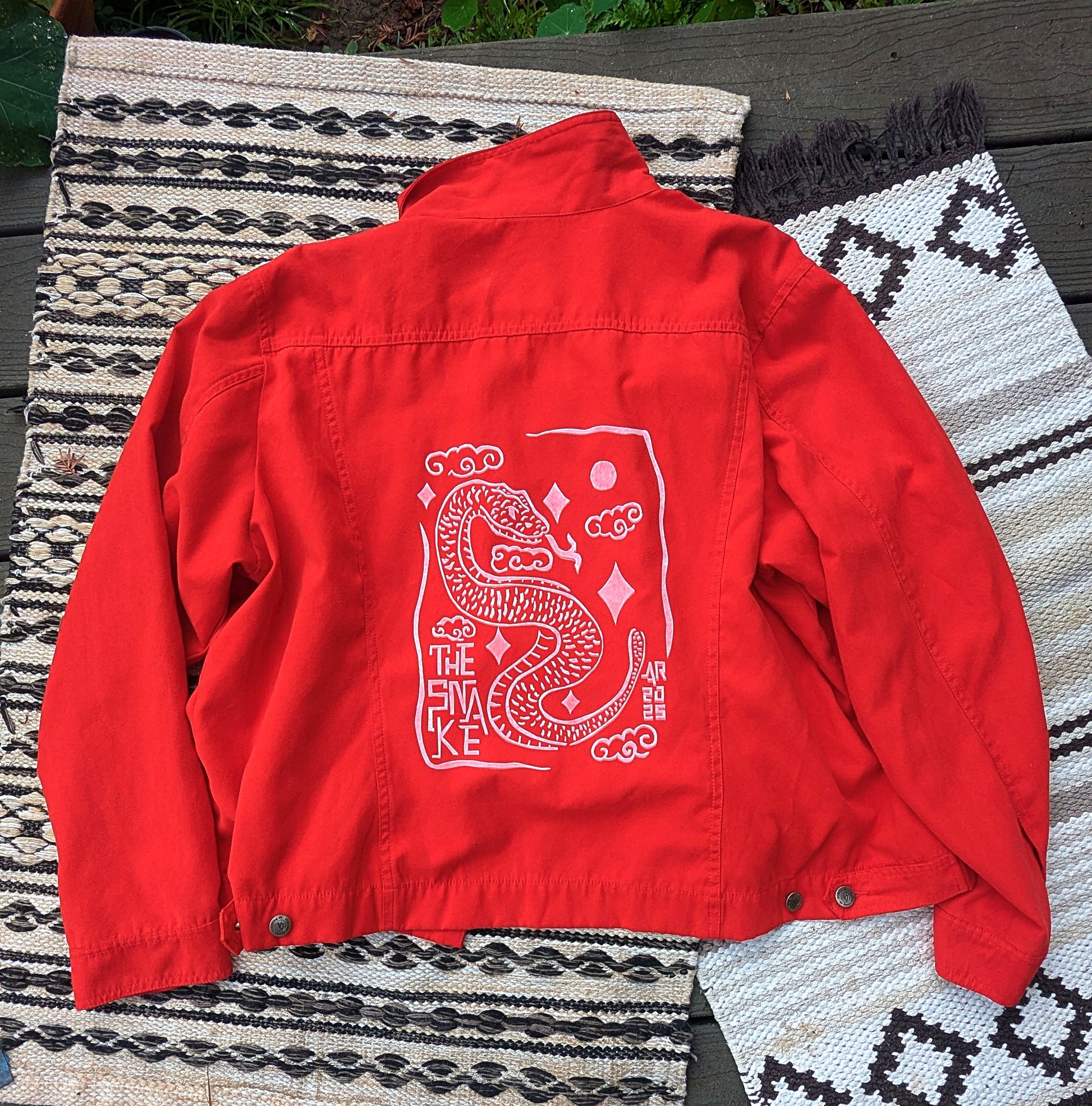 I had so much fun creating this design with love and respect as I hand cut my stencils and cut out over 200 scale marks on the snake's body alone. This design is available on unisex tees and a couple jackets/hoodies to start.